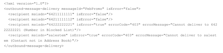 The following XML response example indicates a fundamental problem with the request which resulted in no messages being sent. In this case due to an authentication problem: